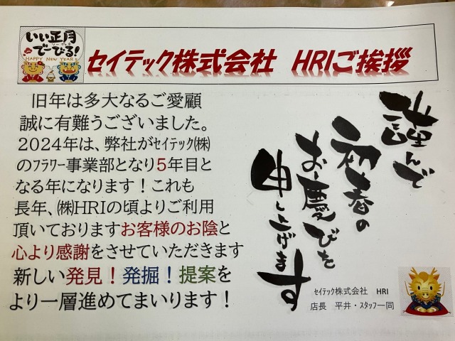 旧年は多大なるご愛顧誠に有難うございました。 2024年は弊社がセイテック株式会社のフラワー事業部として5年目となる年になります!